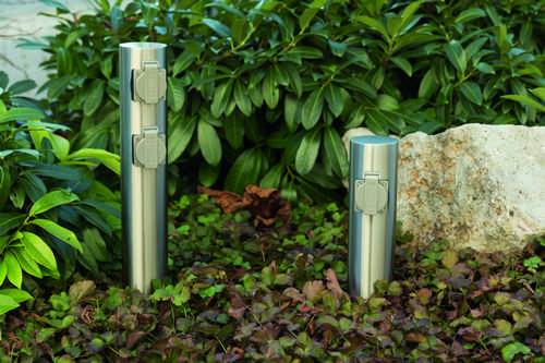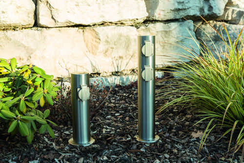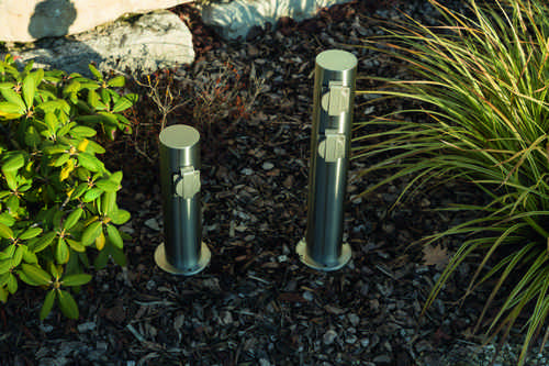 Runde Energiesaeule mit 4 Steckdosen fuer den Aussen- und Inneneinsatz